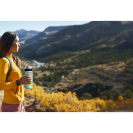 Láhev je vyrobena z tritanu – materiálu, který je zcela bezpečný, lehký, nerozbitný, nemění chuť nápojů a chrání je před UV zářením. Díky látkové šňůrce na zápěstí dostupné v několika barevných variantách je ideálním dárkem nejen pro aktivní lidi. Navíc má manuální bezpečnostní pojistku, která zabraňuje náhodnému otevření.