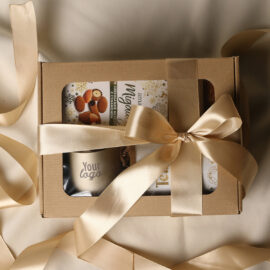 Elegantní doplňky k ozdobení balení: světle zlatá stuha nebo obal
