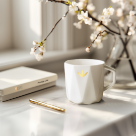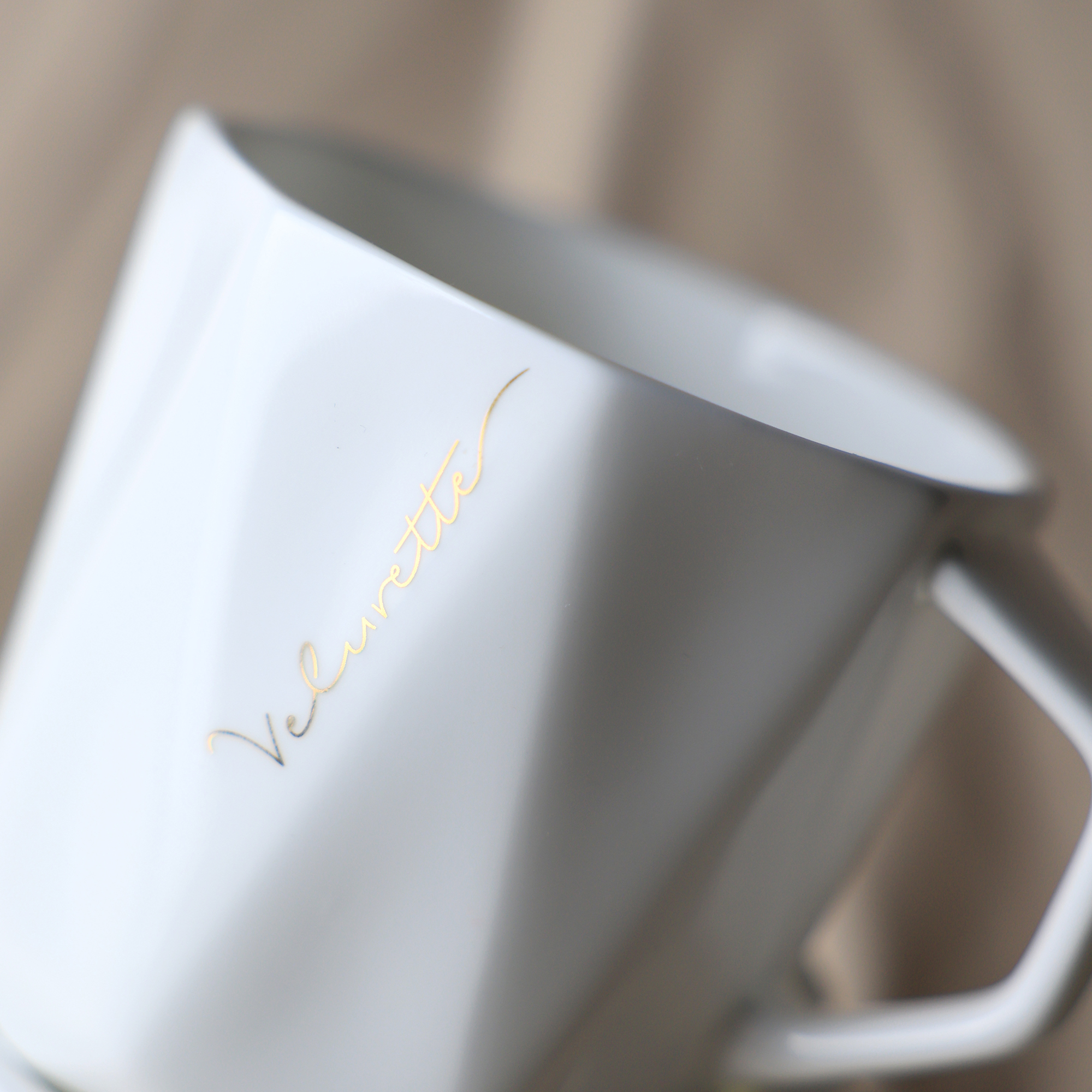 Prestižní hrnek vyrobený z vysoce kvalitního porcelánu Fine Bone China. Vyniká jedinečným geometrickým tvarem, který svou strukturou připomíná diamant. Zástupce kolekce Prestige Line