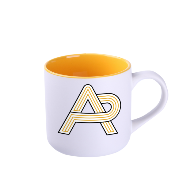 Módní design hrnku s bílým povrchem a saténovým nádechem. Má skvělé možnosti potisku. Dodává se v barevných variantách.