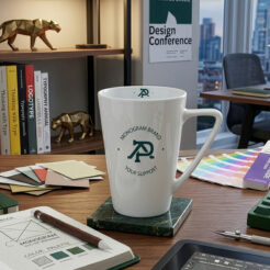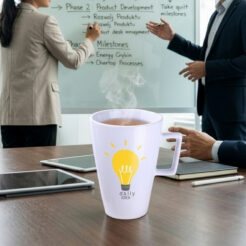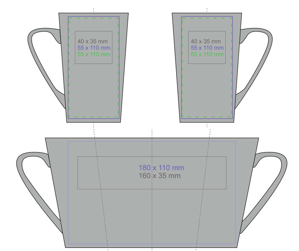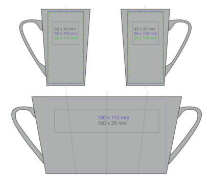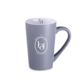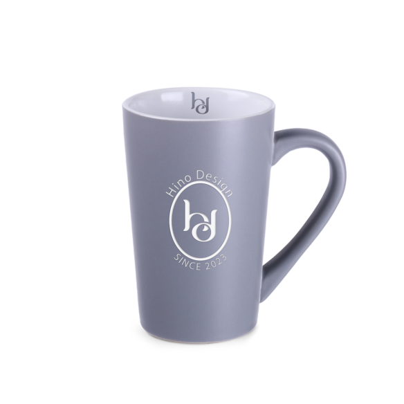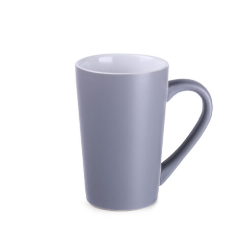 Klasický hrnek s lichoběžníkovým tvarem a vysokými stěnami. Vyznačuje se elegantním šedým matným povrchem. Je ideální pro potisk velkých grafických motivů.