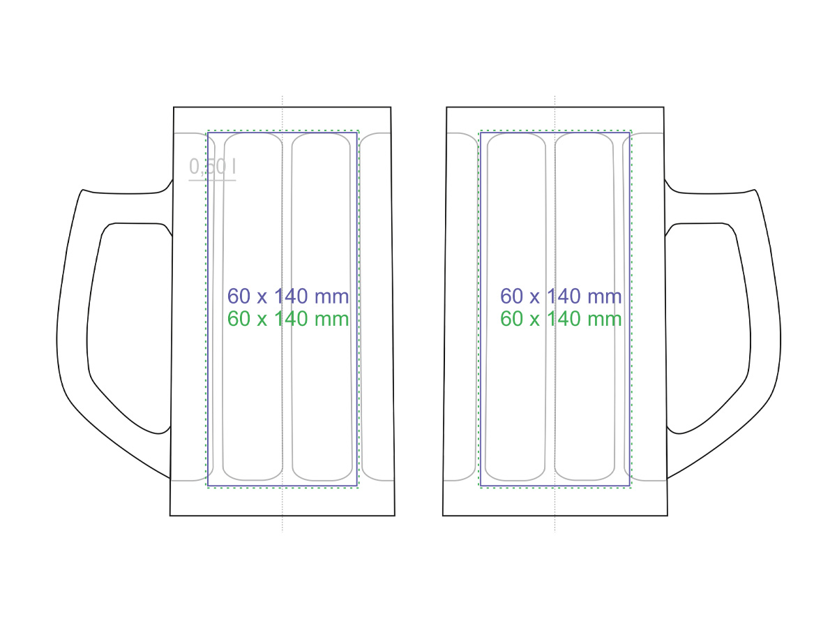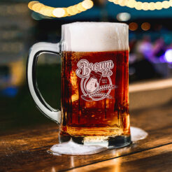 Prostorný, jednoduchý půllitr na pivo vyráběný v Evropě. Má ergonomické ucho a ozdobné vlisy na těle.