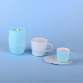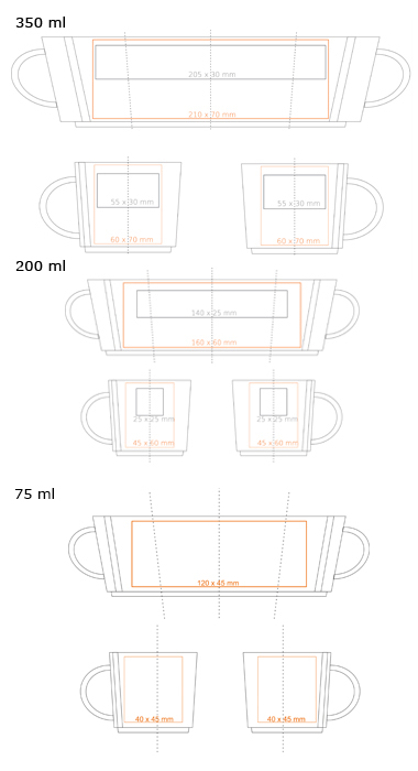 Oblíbený a ergonomický model z porcelánu. Vyznačuje se zajímavým svislým reliéfem na obou stranách ucha. Dodává se ve třech velikostech. Tento elegantní styl podtrhne originalitu každé propagované značky.
