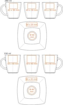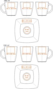 Kombinace šálku a čtvercového podšálku