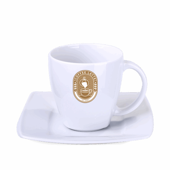 Porcelánová sada elegantního šálku a podšálku. Charakteristickým znakem tohoto stylu jsou čtvercové tvary a jemné okraje viditelné ve spodní části.
