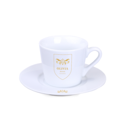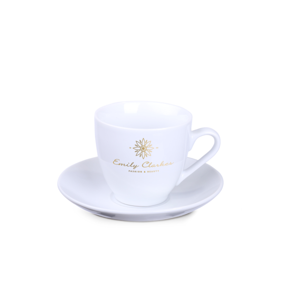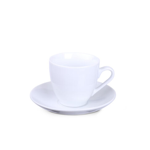 Šálek na kávu s podšálkem klasického tvaru. Vyroben z vysoce kvalitního porcelánu. Je k dispozici ve dvou velikostech.