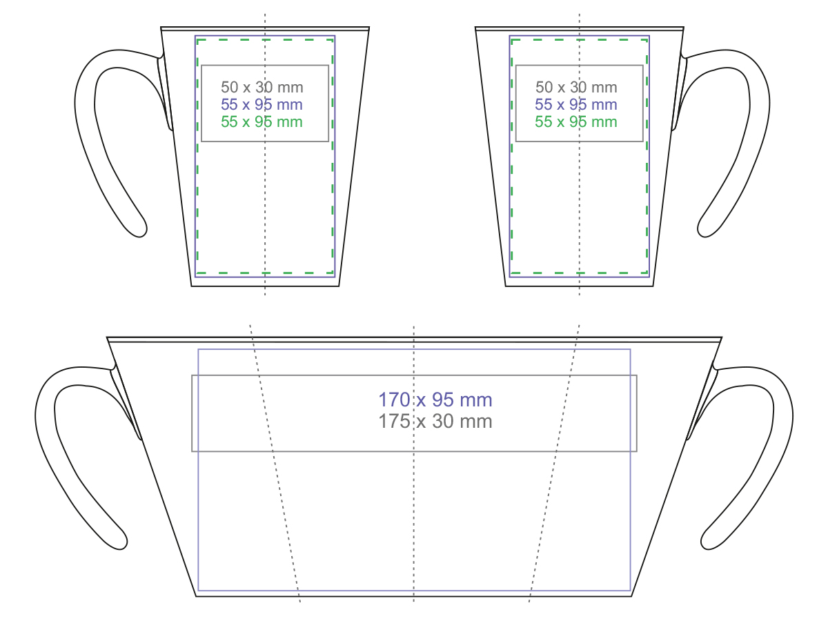 Originální hrnek s moderním „otevřeným“ uchem. Vnitřek i ucho jsou na výběr ve 4 barvách. Jeho rovné stěny jsou ideální pro potisk velkými grafickými motivy.