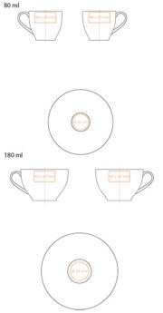 Klasický šálek se silnými stěnami a elegantním tvarem s podšálkem. Vyroben z krásného evropského porcelánu. Má pohodlné a ergonomické ucho.