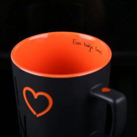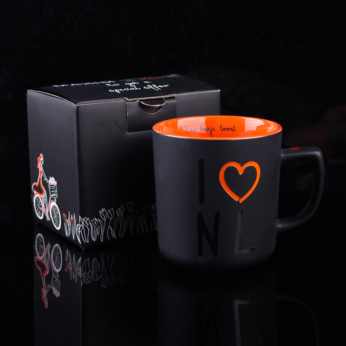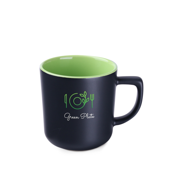 Elegantní matný černý hrnek moderního tvaru. Má skvělé možnosti přizpůsobení. Je dostupný v 6 barevných variantách uvnitř.