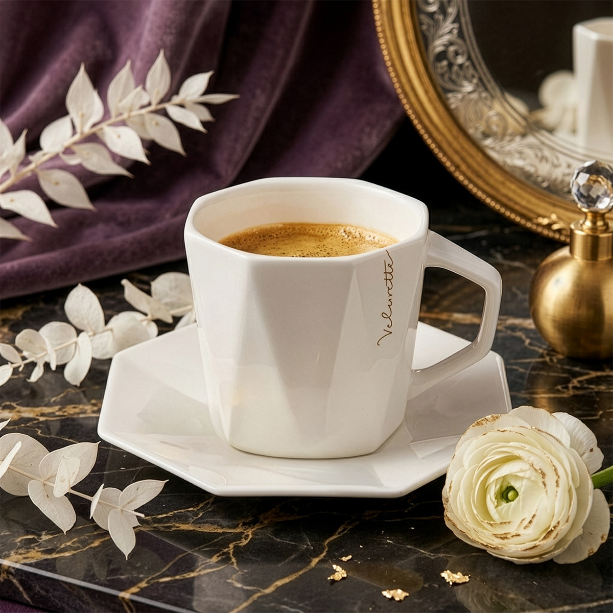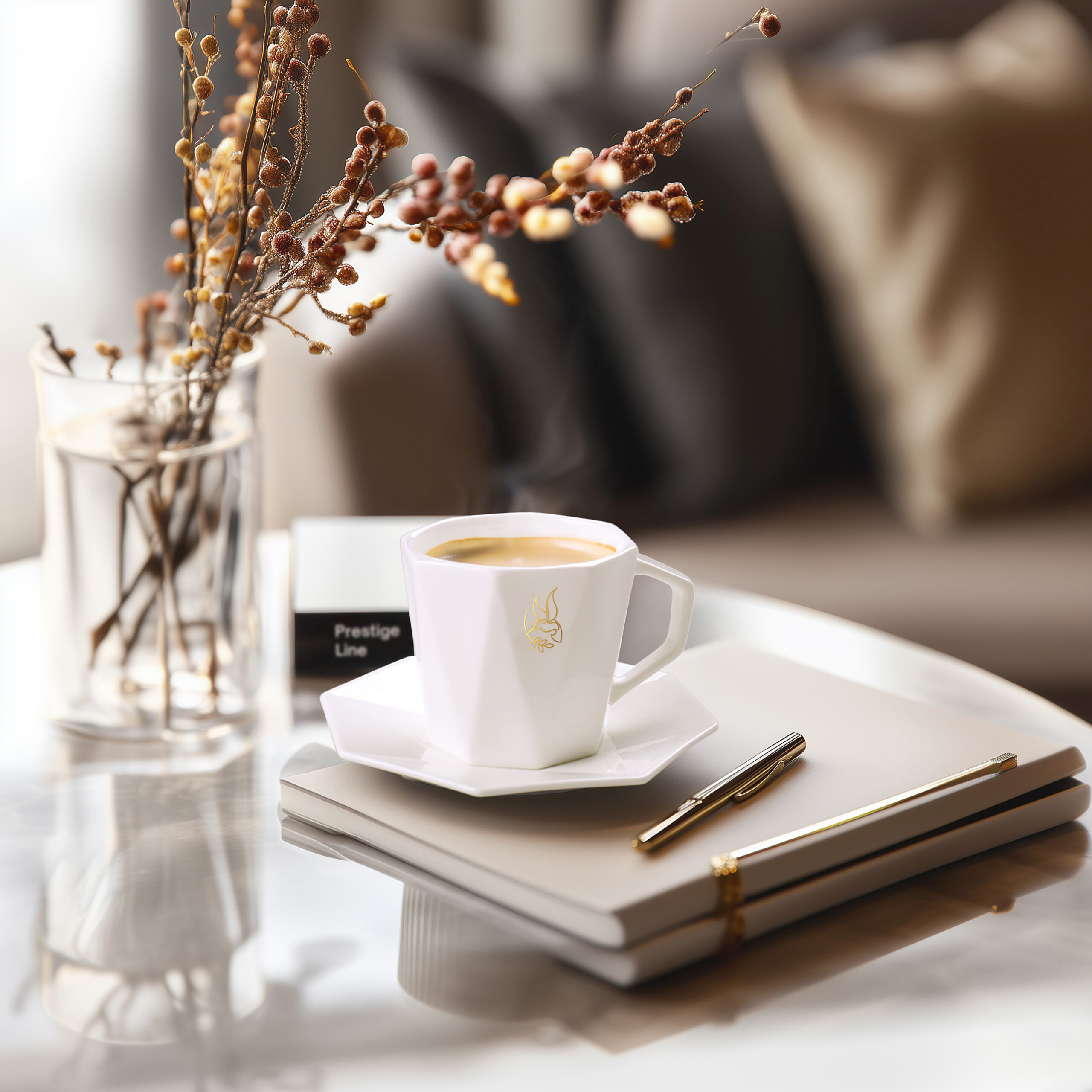 Krásný geometrický šálek vyrobený z nejkvalitnějšího porcelánu Fine Bone China. Má dokonale padnoucí podšálek. Patří do řady Prestige Line. Ideální v kombinaci s hrnkem Tiara.