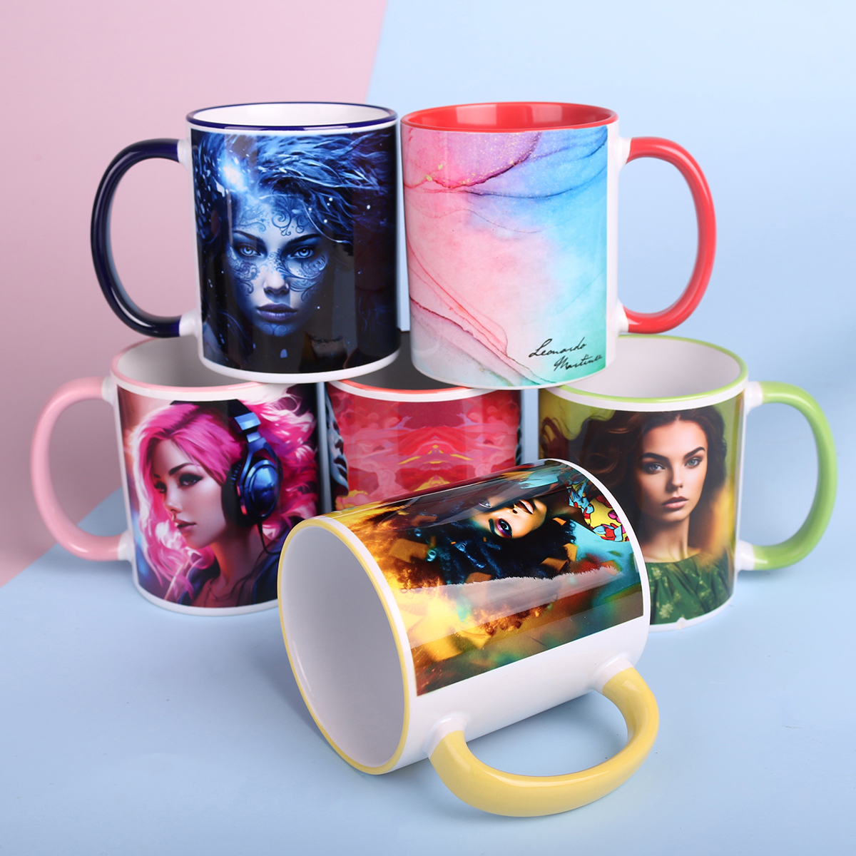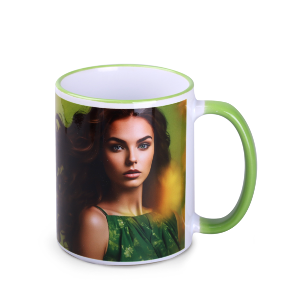 Výjimečně barevný sublimační hrnek s jednoduchým tvarem. Ideální pro aplikaci potisků ve fotografické kvalitě. To, čím vyniká, jsou obroučky a uši barvené v mnoha barvách.