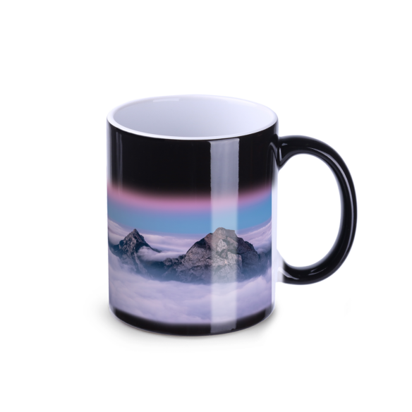 Hrnek klasického tvaru, na kterém se po zalití vroucí vodou „magicky“ objeví vlastní grafika. Lze jej potisknout ve fotografické kvalitě. Pro ty, kteří oceňují překvapivá řešení.