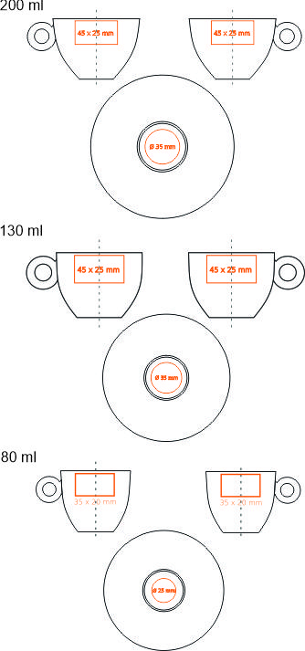 Silnostěnný šálek a podšálek vyrobený z evropského porcelánu. Má elegantní kulaté ucho. Je k dispozici ve 3 velikostech.