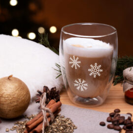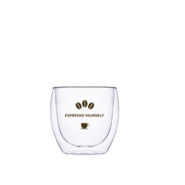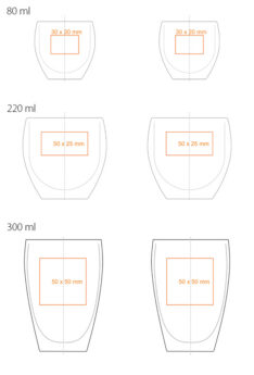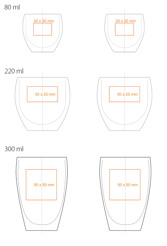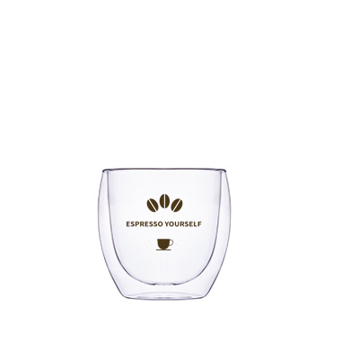 Oblíbený skleněný model ve třech velikostech. Dvoustěnná sklenice poskytuje úžasný efekt „zavěšení“ nápoje uvnitř a nádherně na ní vynikne branding.