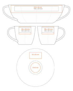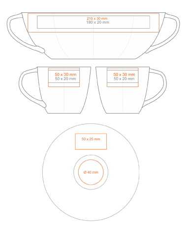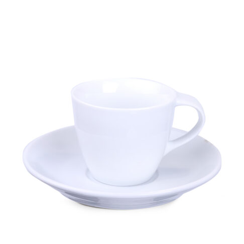 Decentní porcelánový šálek s podšálkem, atraktivním tvarem ucha a velkými možnostmi brandingu.